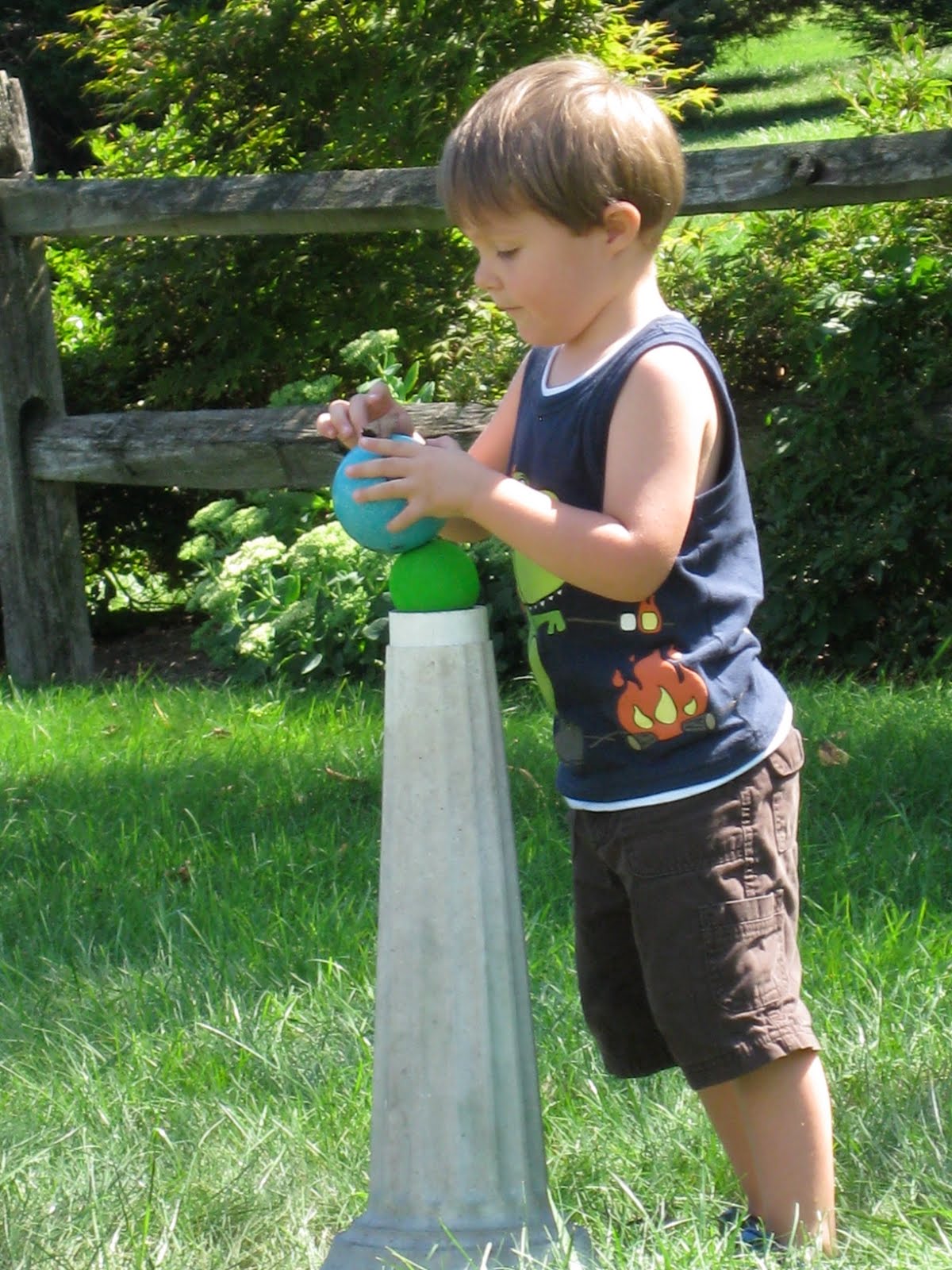 "No, I already went potty." (Over the side of the deck. What IS it about boys and peeing outside?)